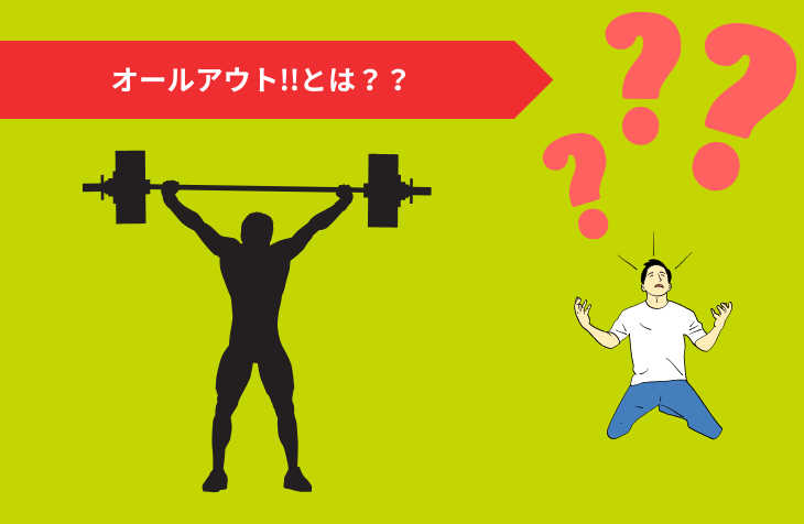 オールアウト(All Out)とは、筋トレにおいて「限界まで筋肉を使い切ること」を意味します。