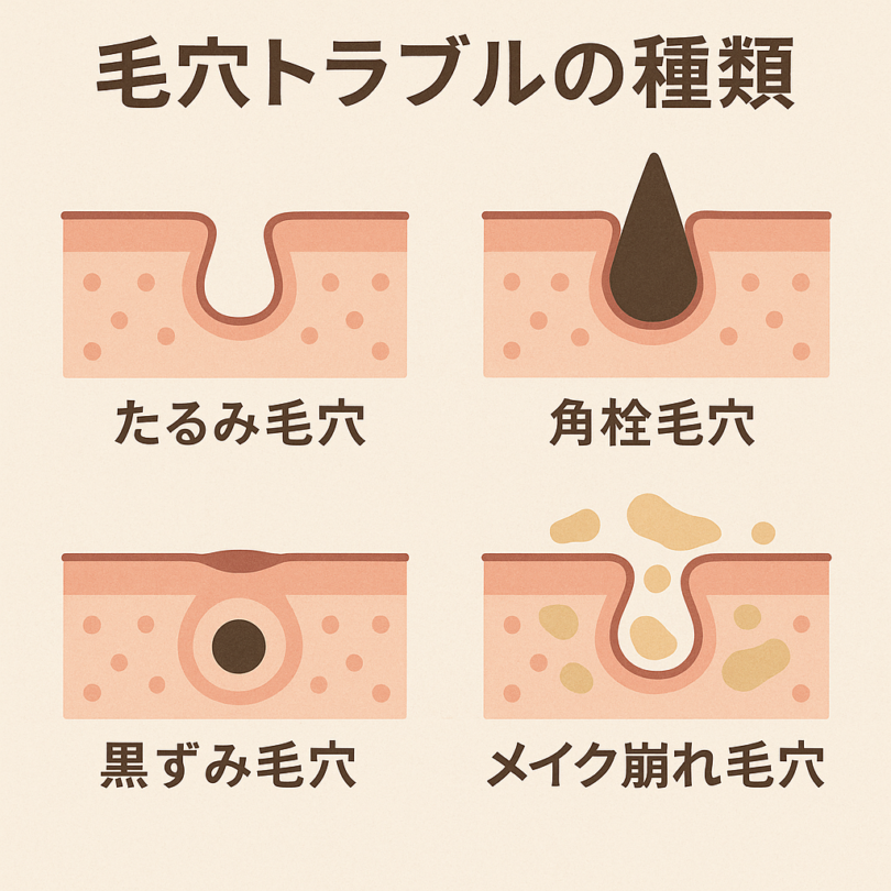 - 黒ずみ毛穴:酸化皮脂で黒っぽく見える