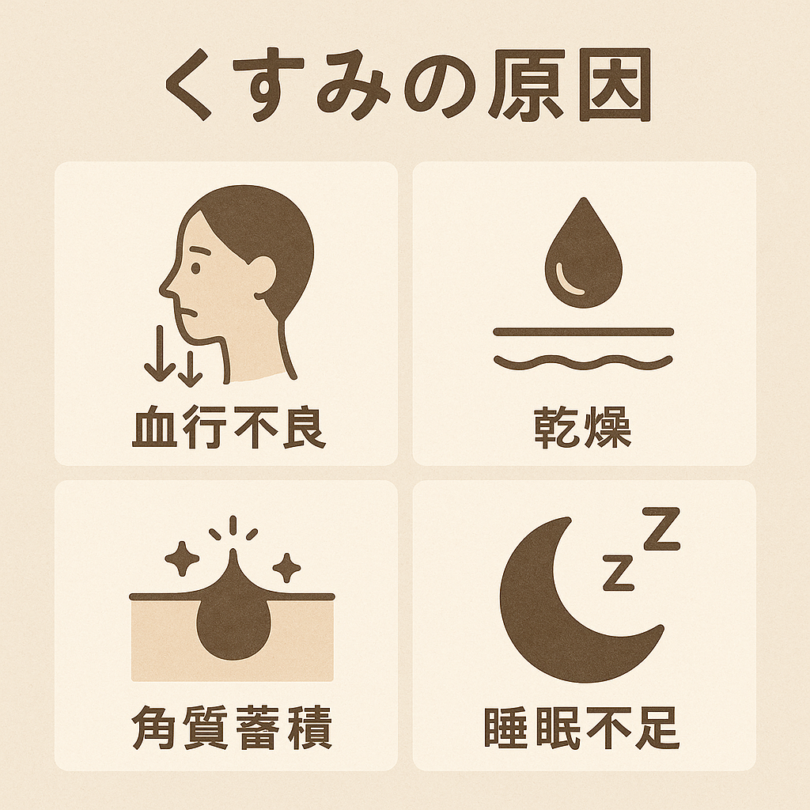 - 角質くすみ:肌がゴワつき、透明感が低下